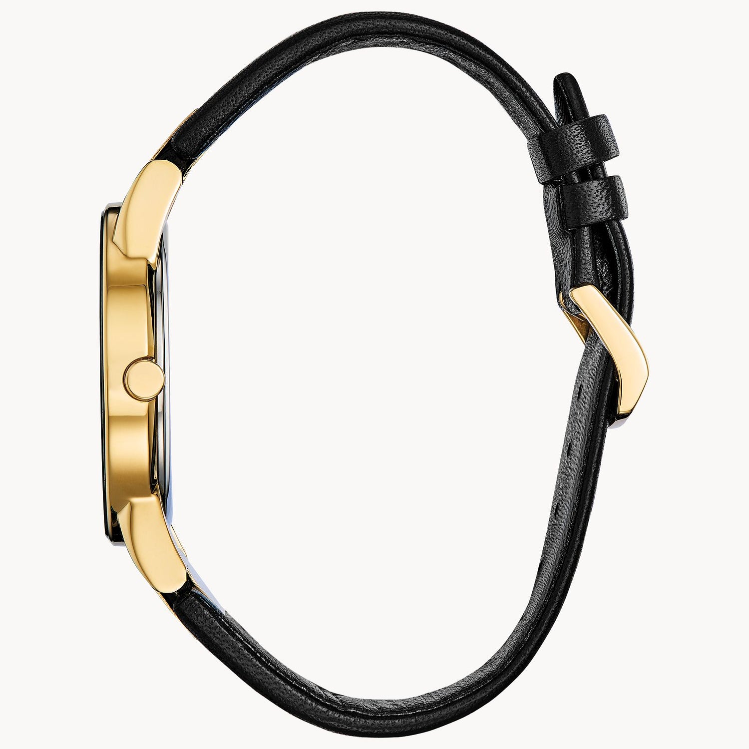 Axiom's refined yet sleek design offers a day-to-night fashion option for the avid trendsetter. Featured in a gold-tone stainless steel case with a black leather strap, a black dial and the intriguing feature of edge-to-edge glass. Featuring our Eco-Drive technology – powered by light, any light. Never needs a battery.