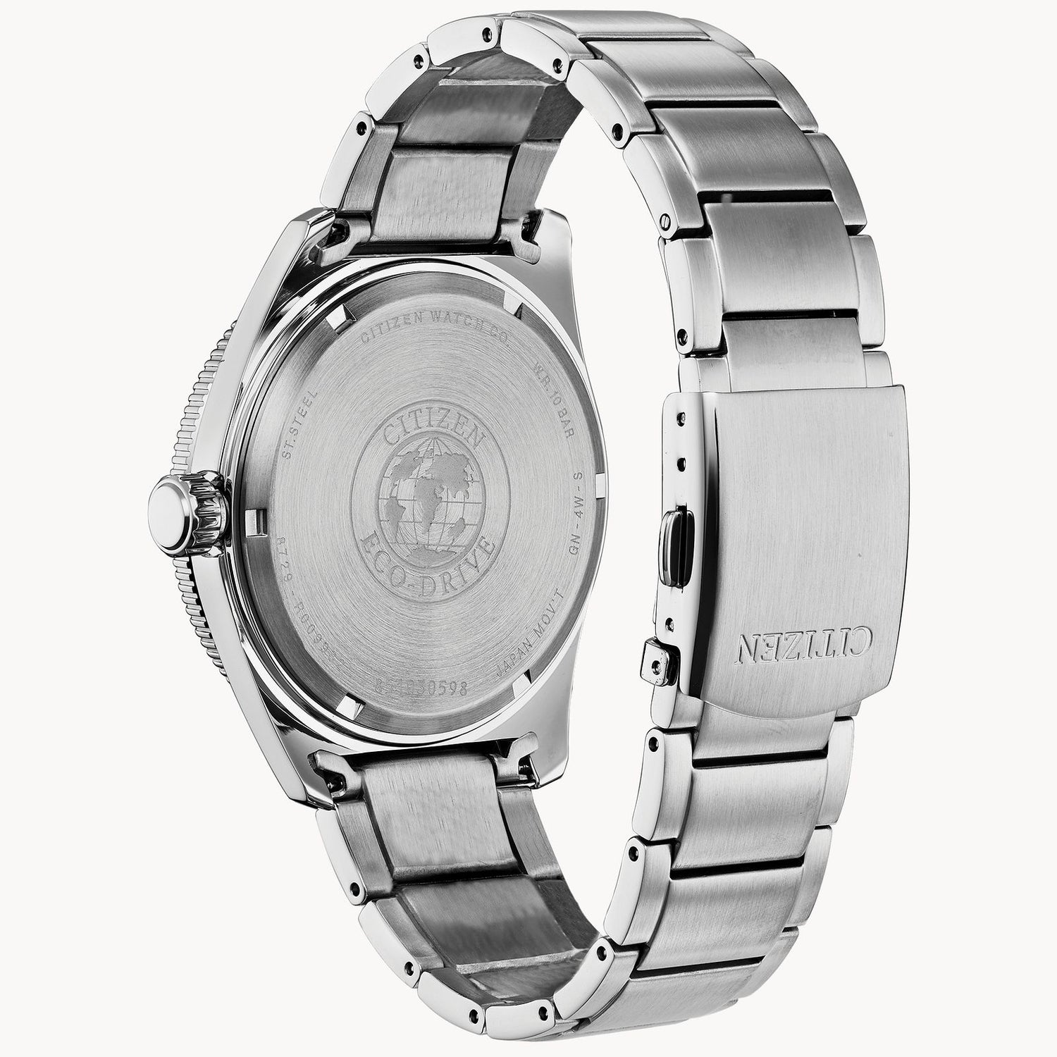 Nothing says classic better than a vintage throwback, and the redesigned CITIZEN® Brycen timepiece is just that, with distinguished features sure to stand out on your wrist. This stylish watch is shown here in a stainless steel case with pine green dial and bezel, stainless steel bracelet and date. Featuring our Eco-Drive technology – powered by light, any light. Never needs a battery.