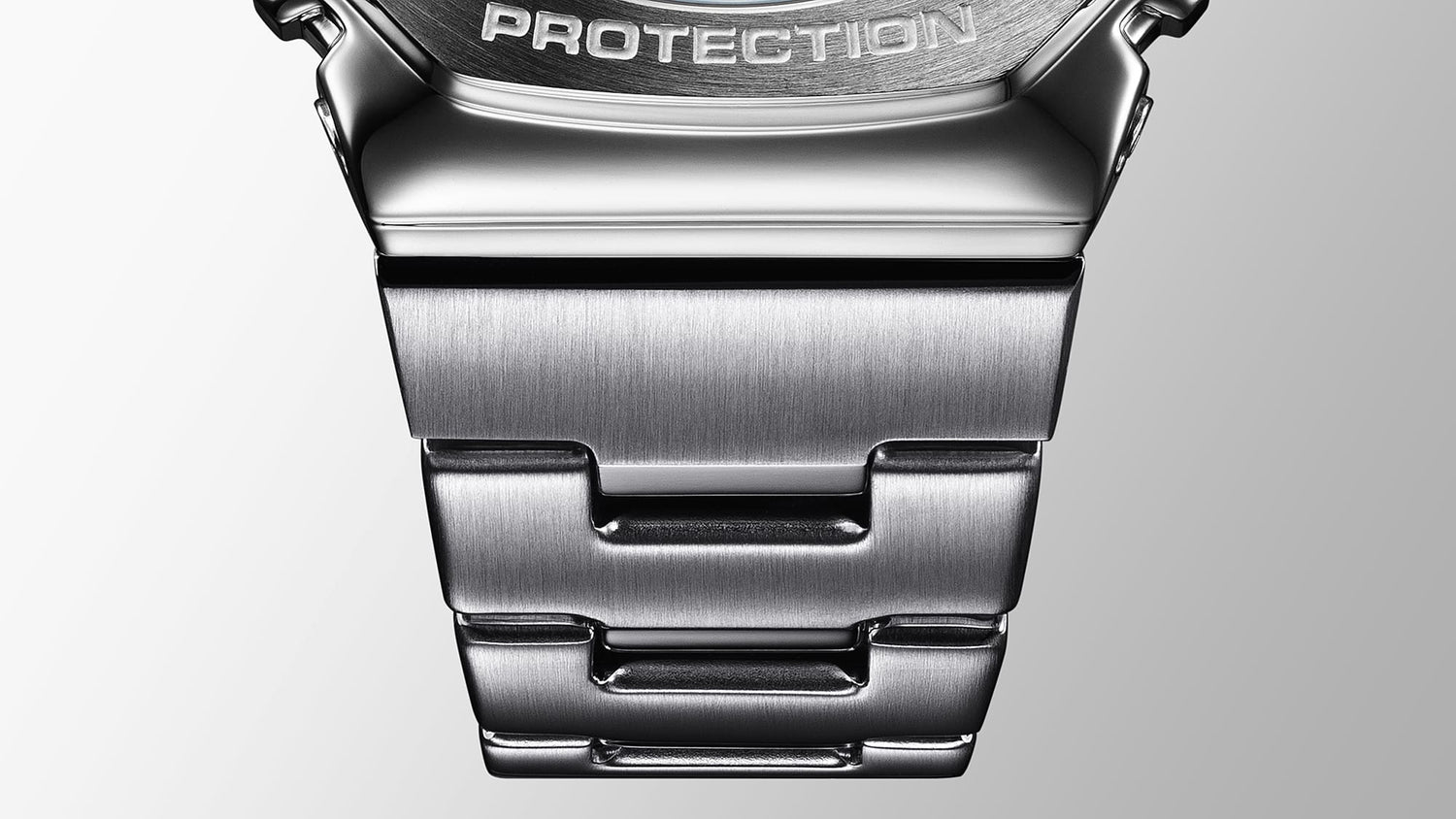 Captivating the watch world in 2019 with its slim case and octagonal bezel, the Casio G-SHOCK GA2100 series redefined the analog-digital watch in style and performance. Always innovating, Casio has released the GM2110D series with a stainless-steel metal bezel and band, casting the original 2100 series in a whole new look while keeping the slim case and design. Having first forged the 2100 into a G-SHOCK 2100 metal watch with a stainless-steel bezel and resin band in the popular GM2100 series, the GM2110D-2A metal G-SHOCK watch sports luxury while remaining practical, and the sophisticated ease of the one-touch, three-fold metal clasp represents that focus.