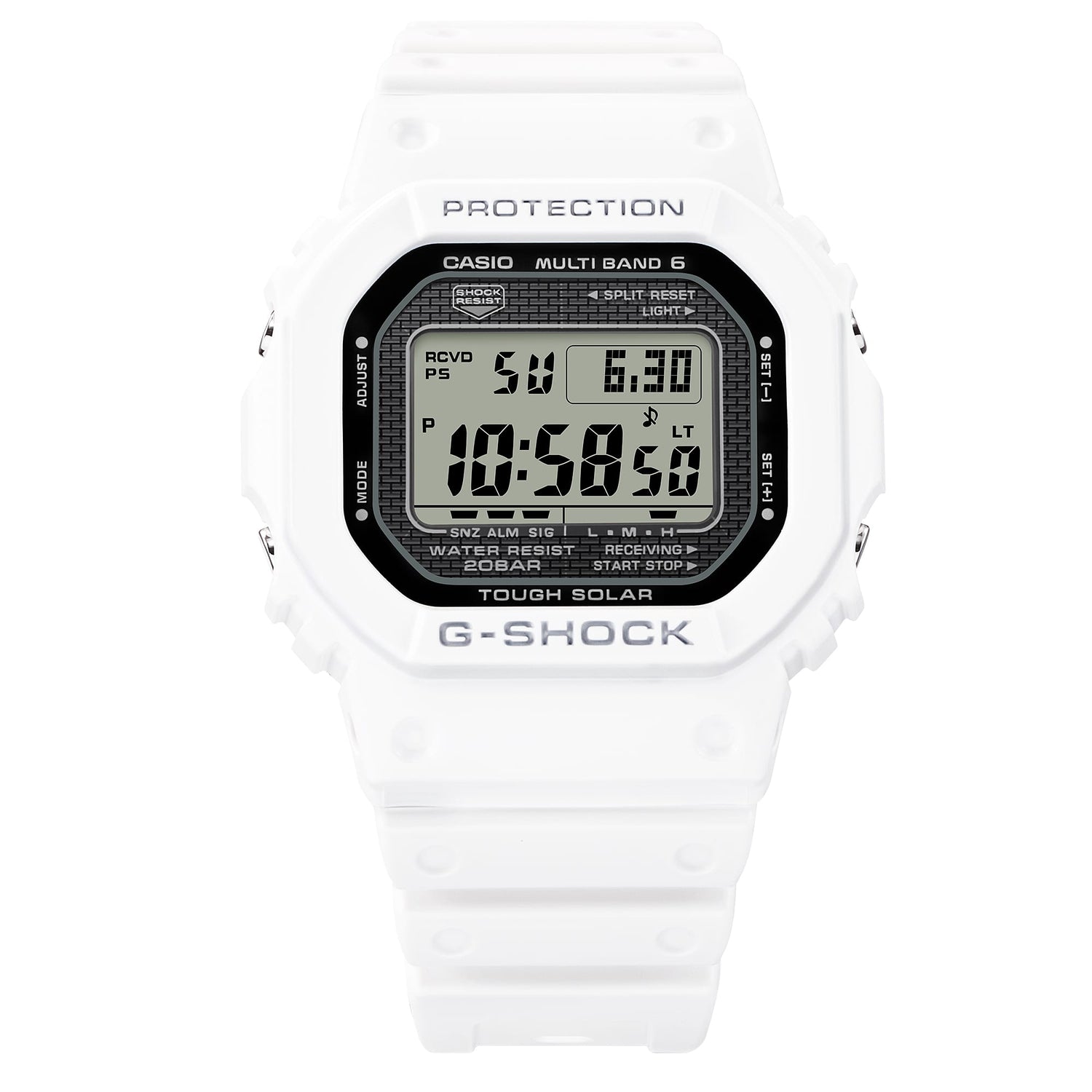 Update your experience of time itself with the latest in the continually evolving legacy of the very first G-SHOCK, the DW-5000C, which hit the scene in 1983. These new takes on the GW-5000 deliver the same functional advances in radio-controlled, solar-powered timekeeping, now in fresh single-tone color options. Rest assured, though — popular design details from the original G-SHOCK, from the solid sophistication of the metal case to the screw-lock case back and face design, stay just the same style. While staying true to the first-ever G-SHOCK, these watches are even tougher. The metal case and screw-lock case back are finished with diamond-like carbon coating for even more outstanding abrasion resistance. The screw-lock case back goes even further with a mirror finish that exude quality. The bezel, band, and other key resin components are made of bio-based resin, a material expected to help reduce environmental impact. These watches bring sophisticated technology to the timeless 1983 design to deliver truly contemporary excellence.