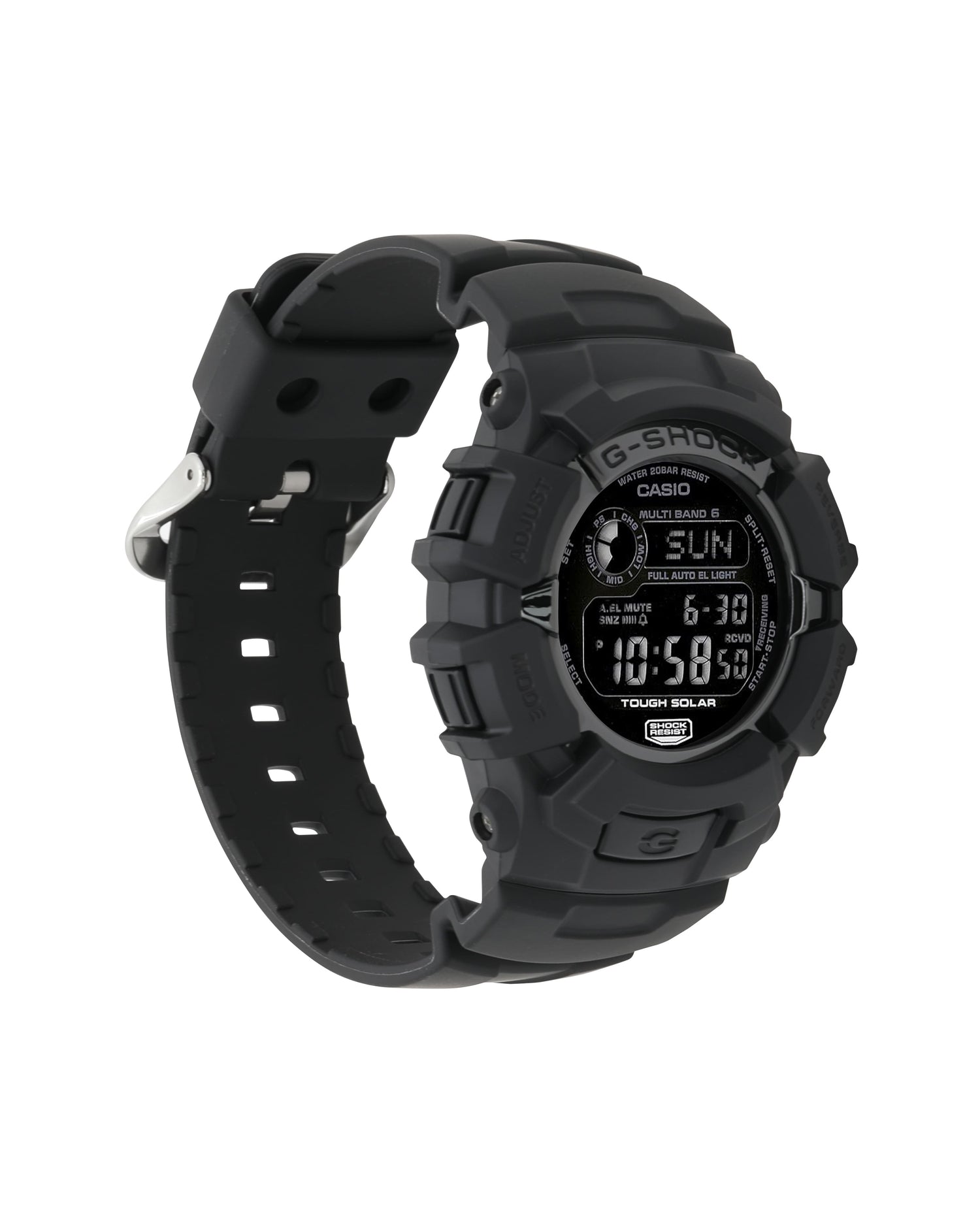 This new color addition of the GW2310 model is cloaked in stealth black, highlighted by a black IP stainless steel bezel and reverse LCD display. The GW2310 has long been a favorite in the G-Shock line up for its utilitarian look and rugged toughness.Standard features include five alarms, 1/100th second stopwatch, countdown timer and world time as well as a full auto EL backlight, tough solar power system and Multi-Band 6 Atomic Timekeeping. Black resin band digital watch with black face. • Tough Solar Power • Multi-Band 6 Atomic Timekeeping • 200M Water Resistant & Shock Resistant