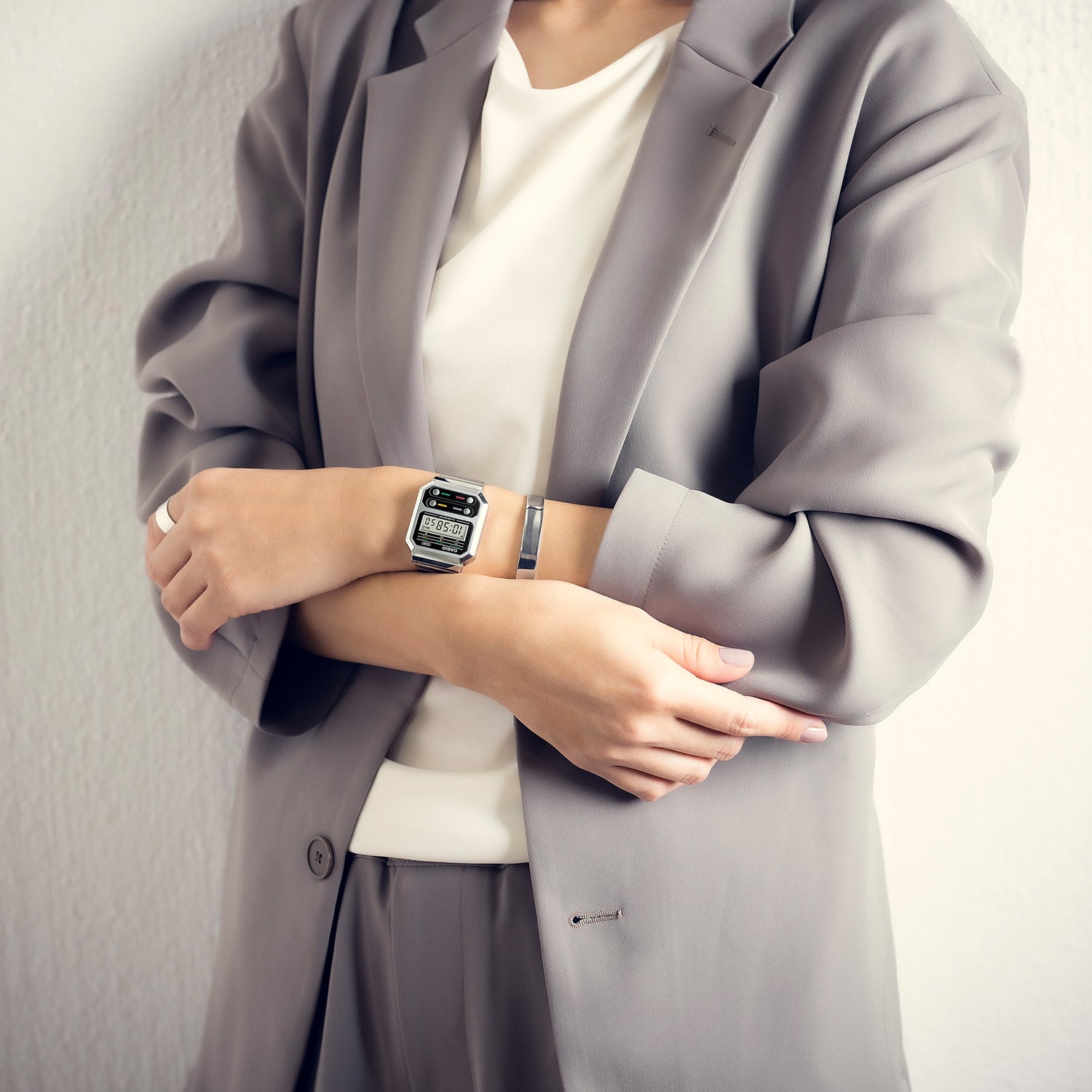 Indulge your inner gadget geek with this stylish non-gendered timepiece straight from the Casio Vintage collection. The A100 line pays homage to the F‐100, the first Casio watch built with a resin case. We’ve kept the iconic layout with four front buttons but introduced metallic components, still vintage-style, for an updated take on a true classic. Retro in style but packed with contemporary functionality, these timepieces boast a stopwatch, calendar, and water resistance for daily use, and of course an LED light for an easy read in any lighting. Use the slide clasp to easily adjust the band length for the perfect fit.