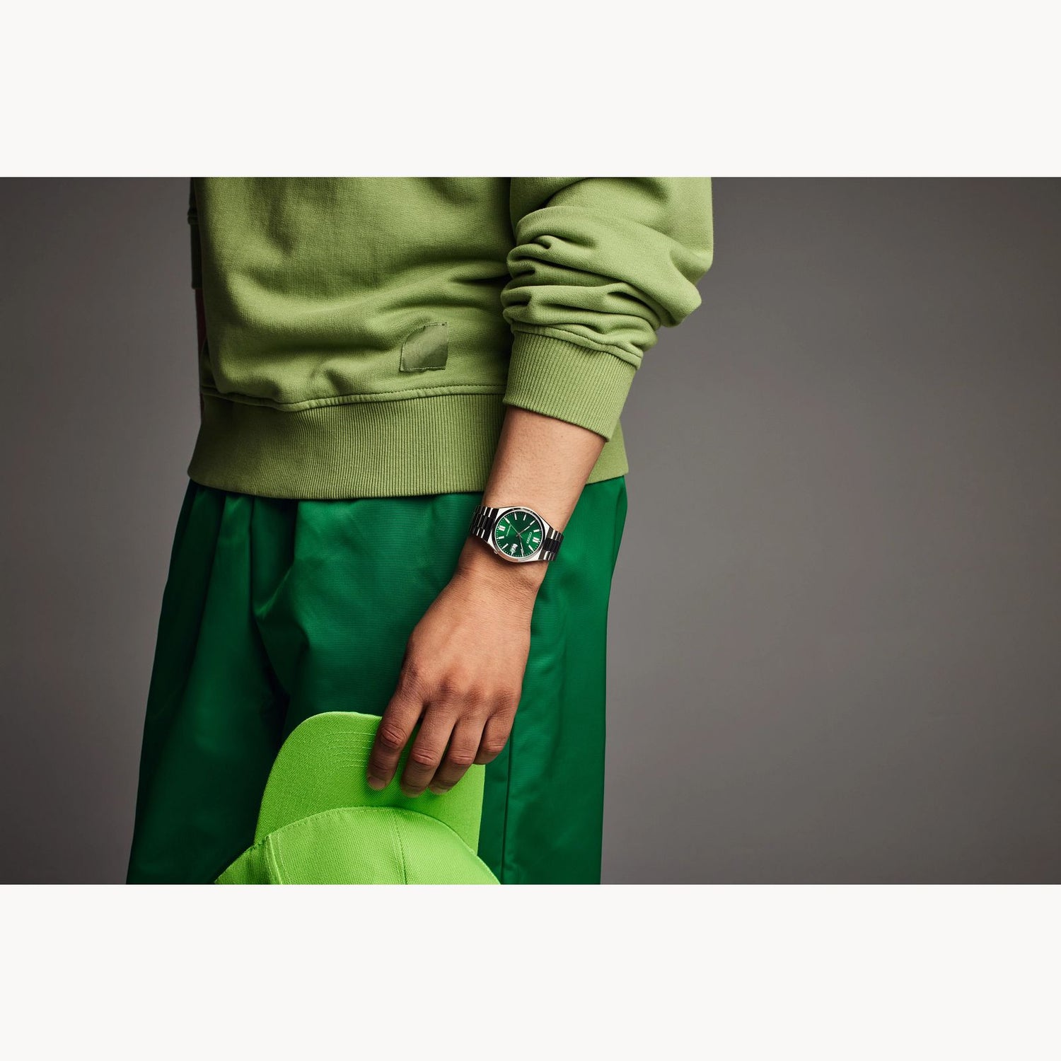 The "Tsuyosa" Automatic, from the NJ015 series, brings ultramodern sports styling right to your wrist. Executed in a versatile 40mm footprint, the sophisticated design of the watch makes a strong impression via a silver-tone stainless steel case and a seamlessly integrated, matching bracelet. Underneath an anti-reflective sapphire crystal, the sporty timepiece makes use of a sunray green dial, with a 3 o’clock date window and contrasting silver-tone details adding to its classic aesthetic. Powered by an automatic movement and offering up to 50 meters of water resistance, the refined timepiece is a daily wearing choice ready for work, play, and everything in between. Caliber 8210.