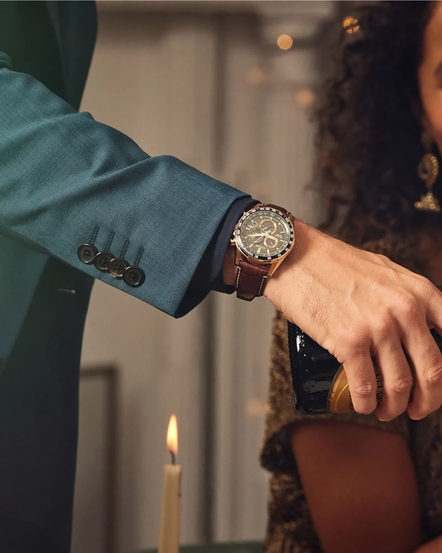 The Perpetual Chrono A-T from CITIZEN® is a must-have timepiece for any enthusiast. Additional features include atomic timekeeping with synchronized time adjustment in 43 world cities, Eco-Drive technology, perpetual calendar, power reserve indicator and a chronograph. It has a brown leather strap and 43mm rose-gold tone stainless steel case with a stylish green dial. For anyone looking to blend timelessness with technology, this watch will hit all the buttons.