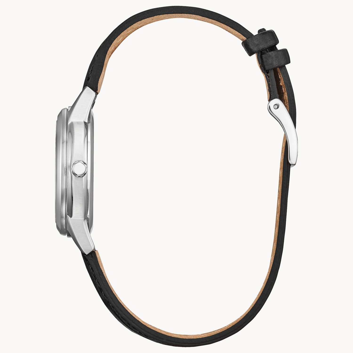 Classic lines and a simple silhouette define the newest addition to the Classic collection. This vintage-inspired timepiece features a silver-tone stainless steel case, a striking blue 3-hand dial with a date function, and a rich black leather strap with buckle closure. Sustainably powered by any light with Eco-Drive technology and never needs a battery.