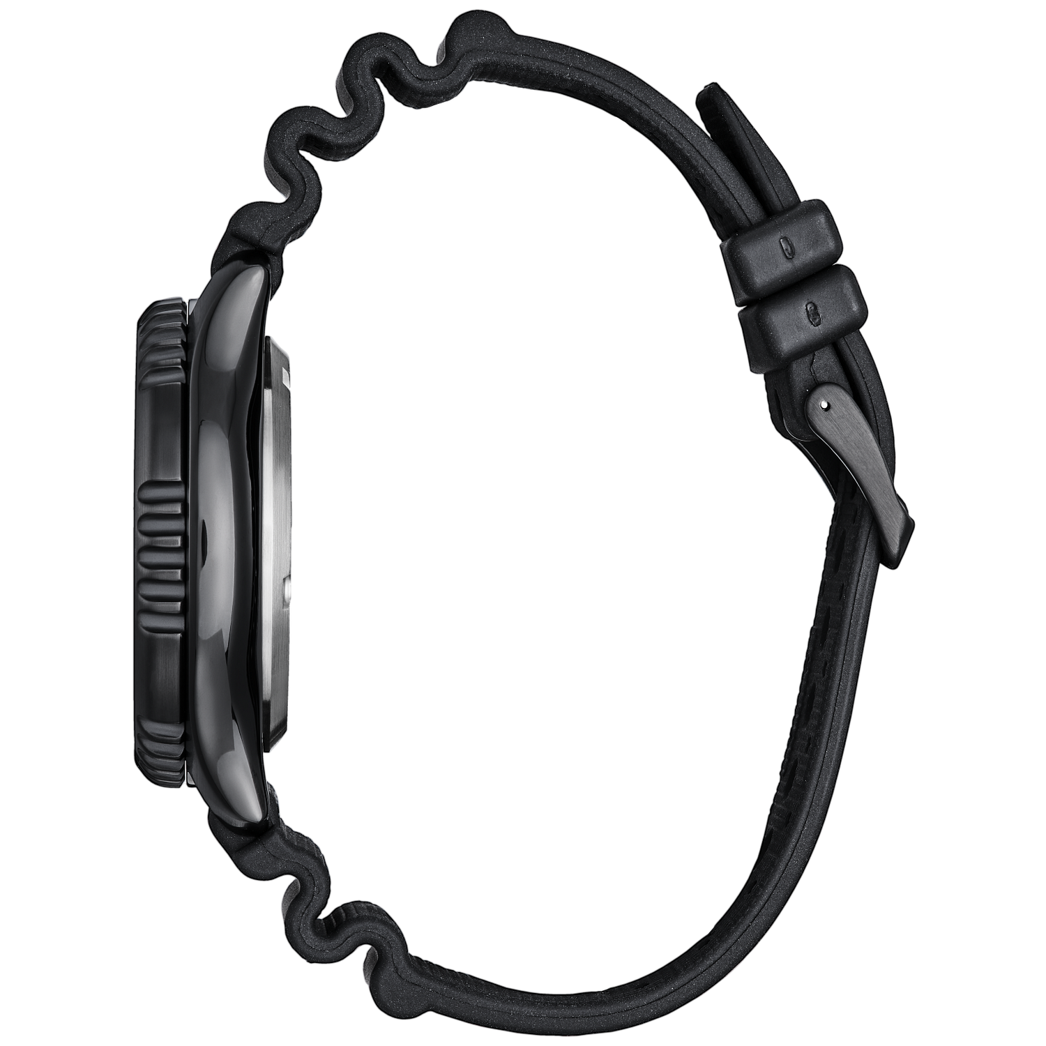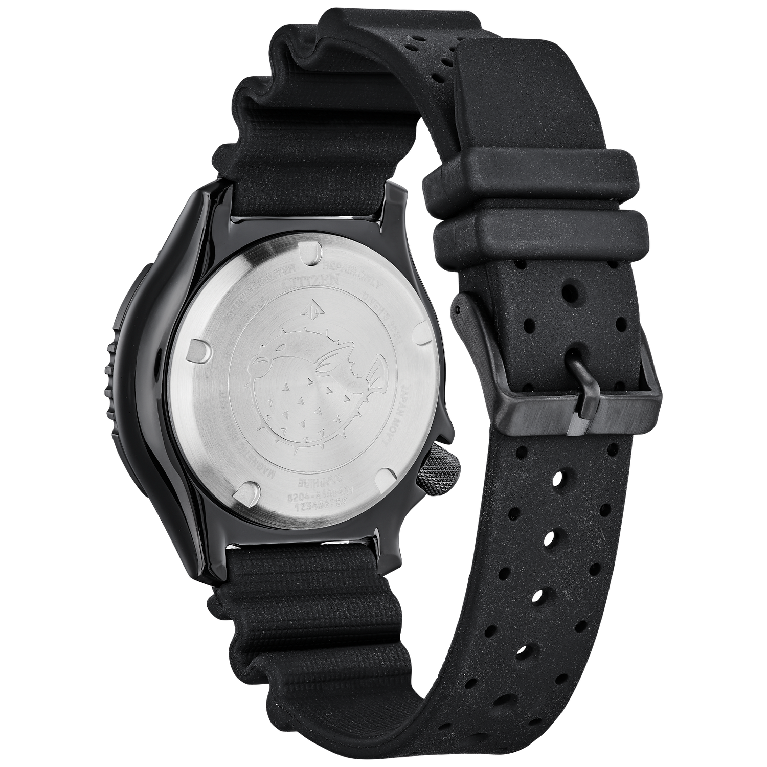 Give a nod to the past with the new Promaster Dive Automatic men’s watch by Citizen. Going deeper into the history of the original version of this diving watch, it was used by the Italian Navy and released in 1989 for the new generation of dive watch enthusiasts. Featuring 3-piece, 44mm case, anti-reflective sapphire crystal and black polyurethane strap, the dark blue rotating bezel with a black easy grip aluminum ring surrounds the dark blue dial and luminous hands and markers. This technically advanced and automatic sport watch comes in an exclusive collector’s dive tank box and is ISO compliant with a screw-down crown and water resistant to 200 metres. Calibre 8204.