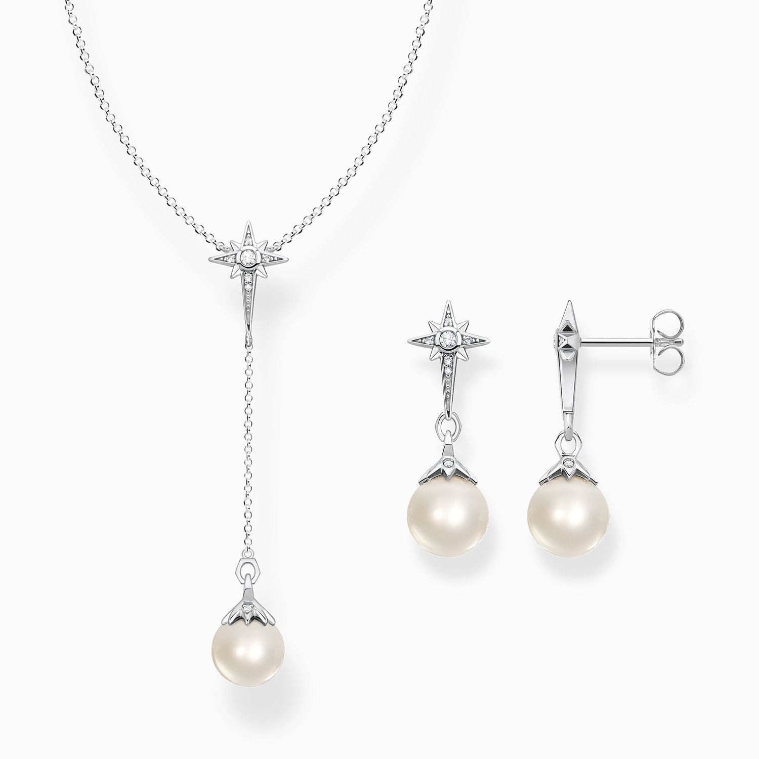In combination with gently shimmering cultured freshwater pearls, these white sparkling earrings with their graphic inspiration are a modern eye-catcher.