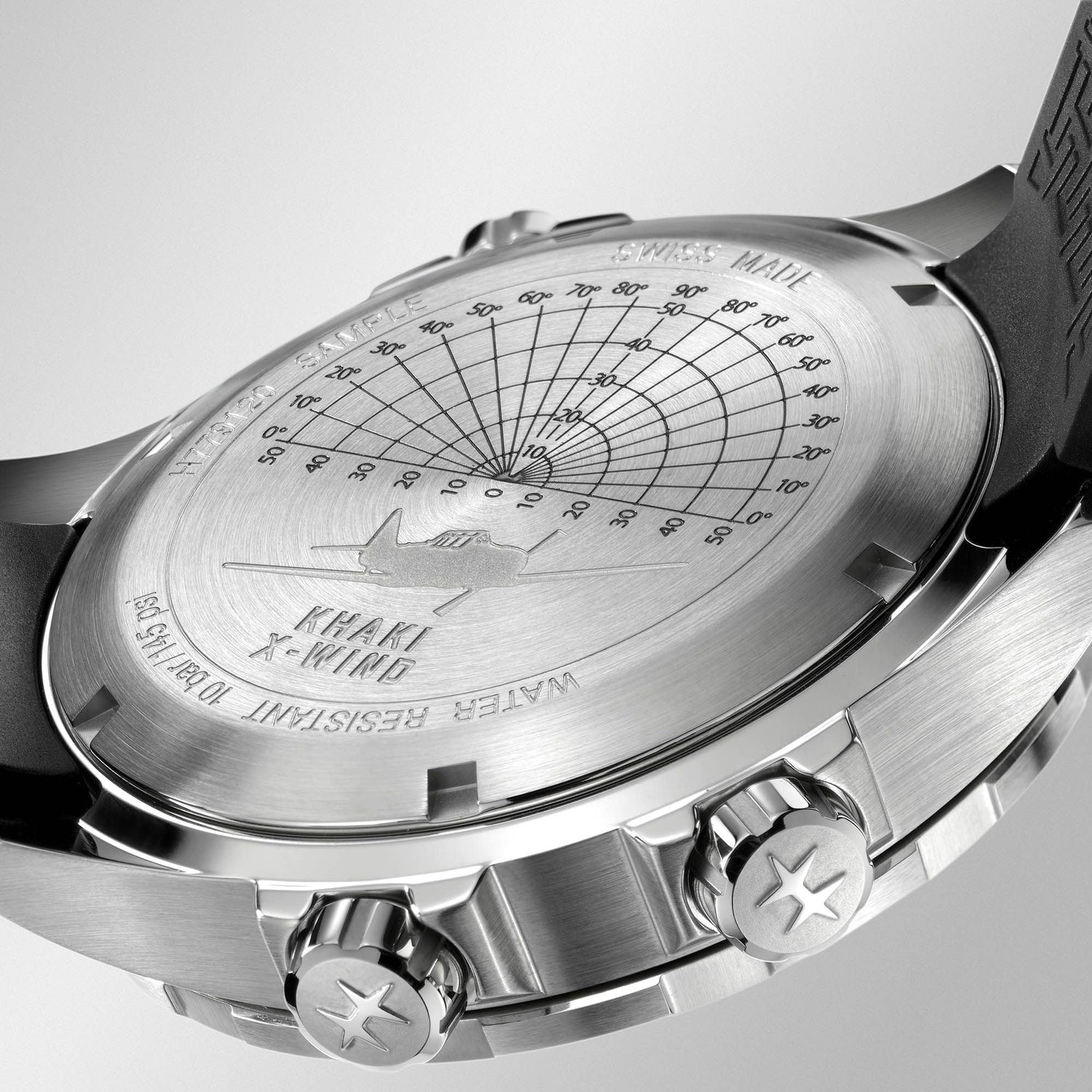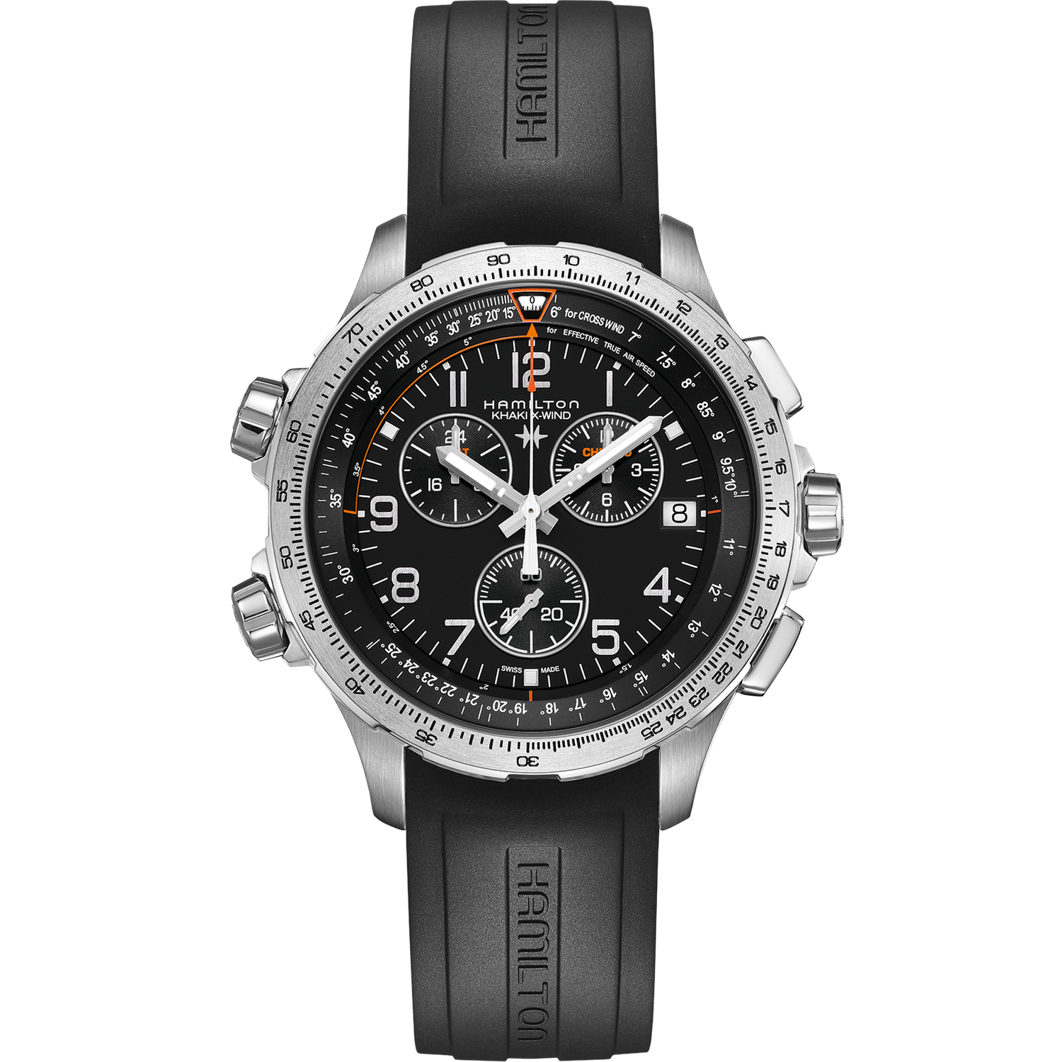 Crosswind calculator, chronograph and now a second time zone: It takes a super sized 46mm stainless steel case to contain all the aviaton features the Hamilton designers have packed into this latest addition to the Khaki X-Wind collection. Adventure meets accuracy and makes a lasting impression, whether you're the captain of the craft or on board as a passenger.