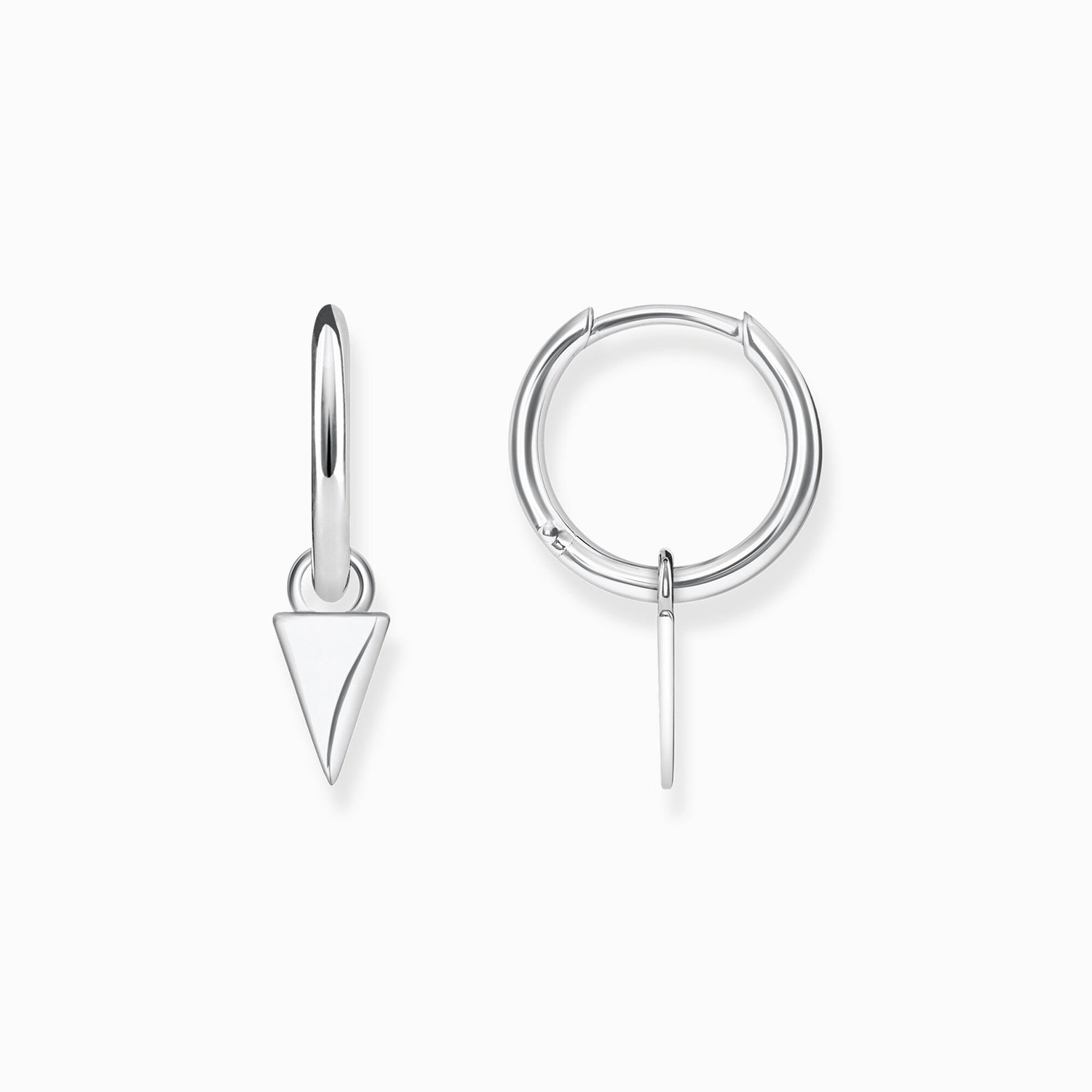 With this hoop earring design, a triangular-shaped highlight ensures a particularly minimalist look. The look acquires individual nonchalance when combined with other hoop earrings.