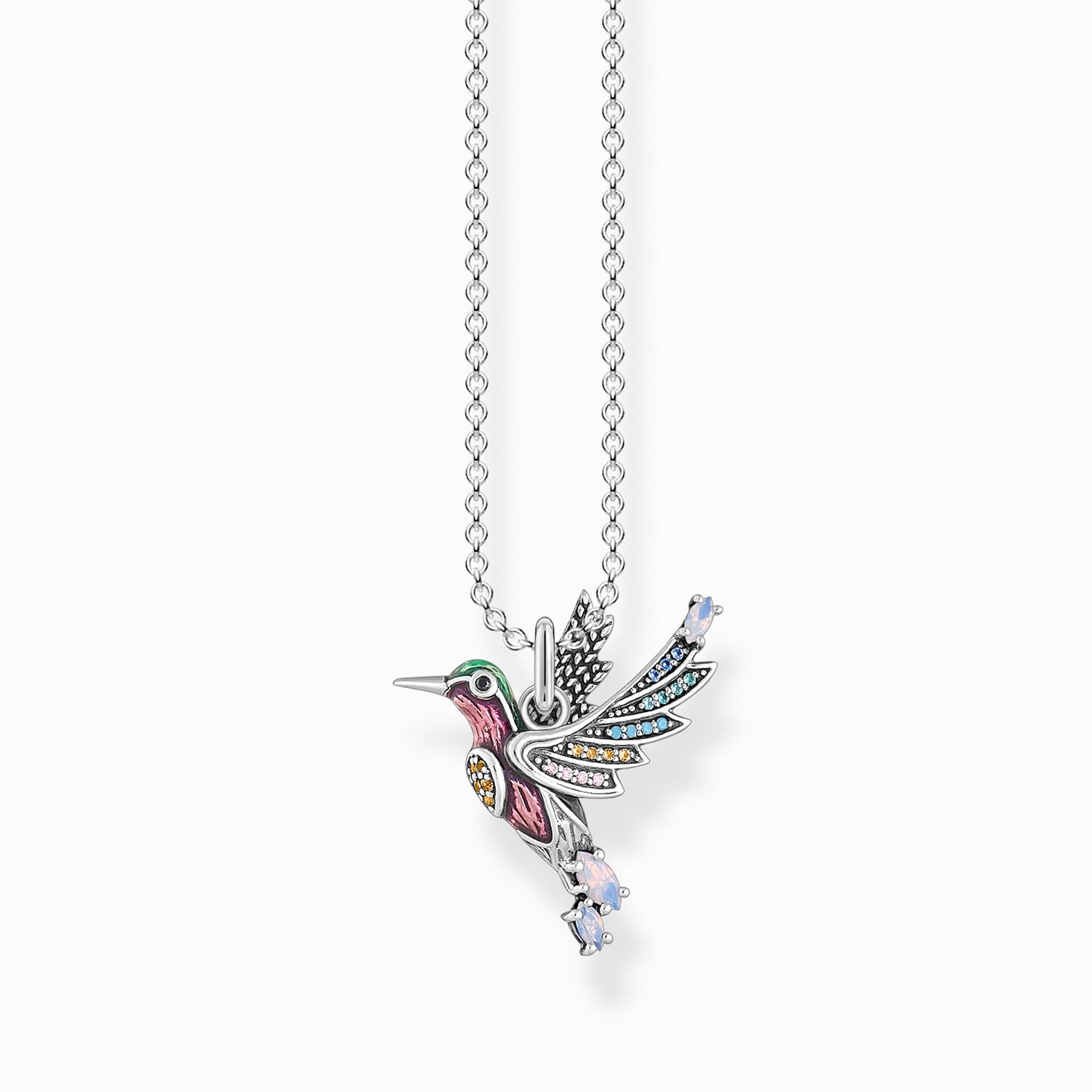 Necklace colourful hummingbird silver