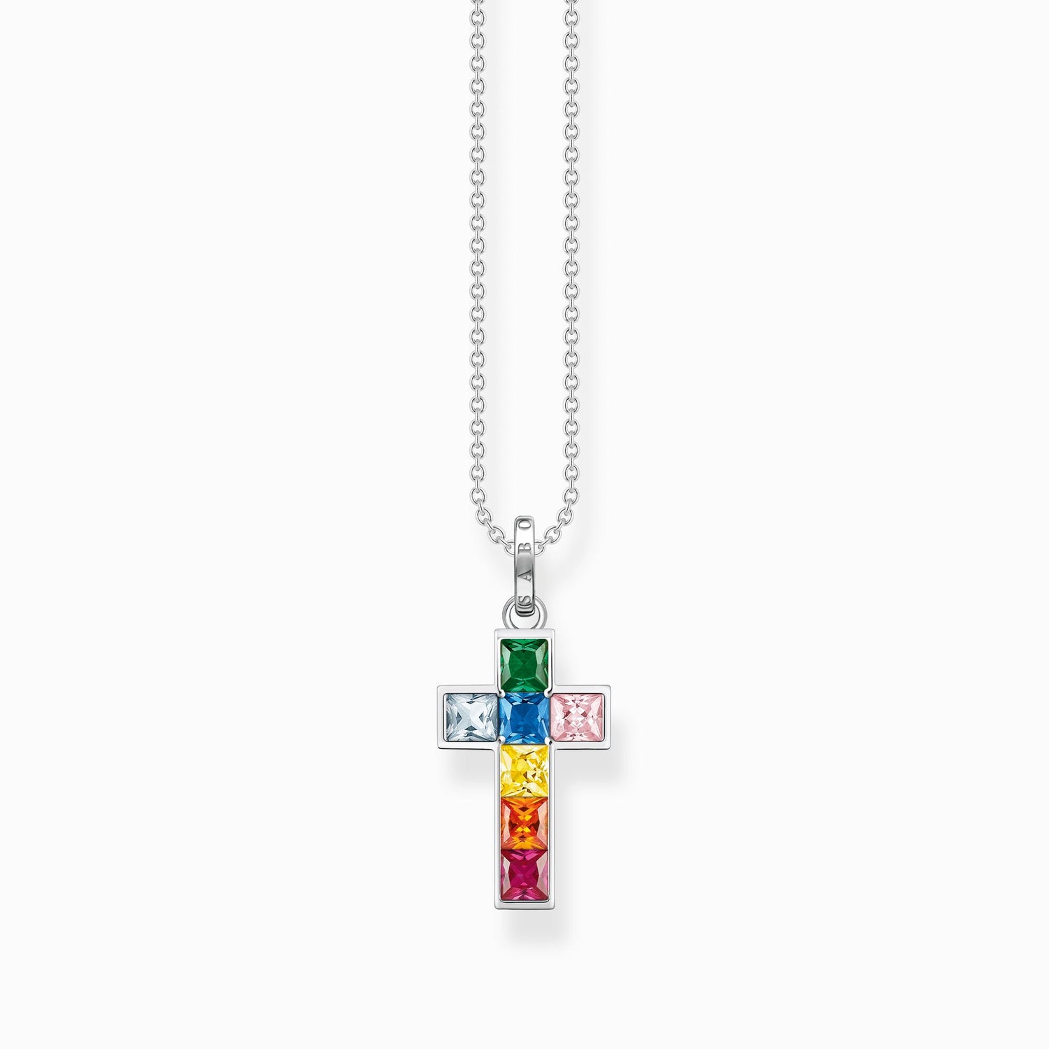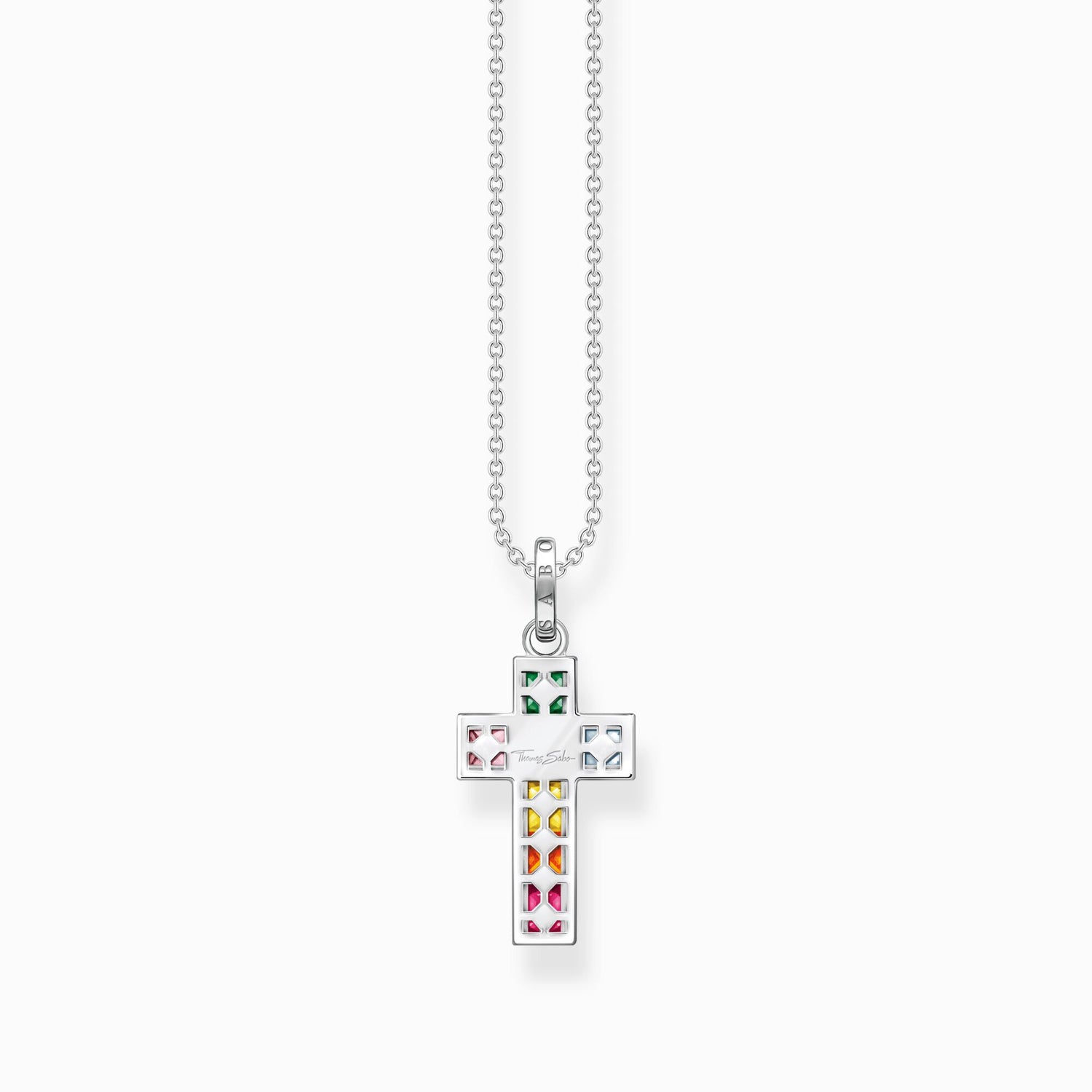 Necklace cross with colourful stones silver KE2166-477-7-L45V