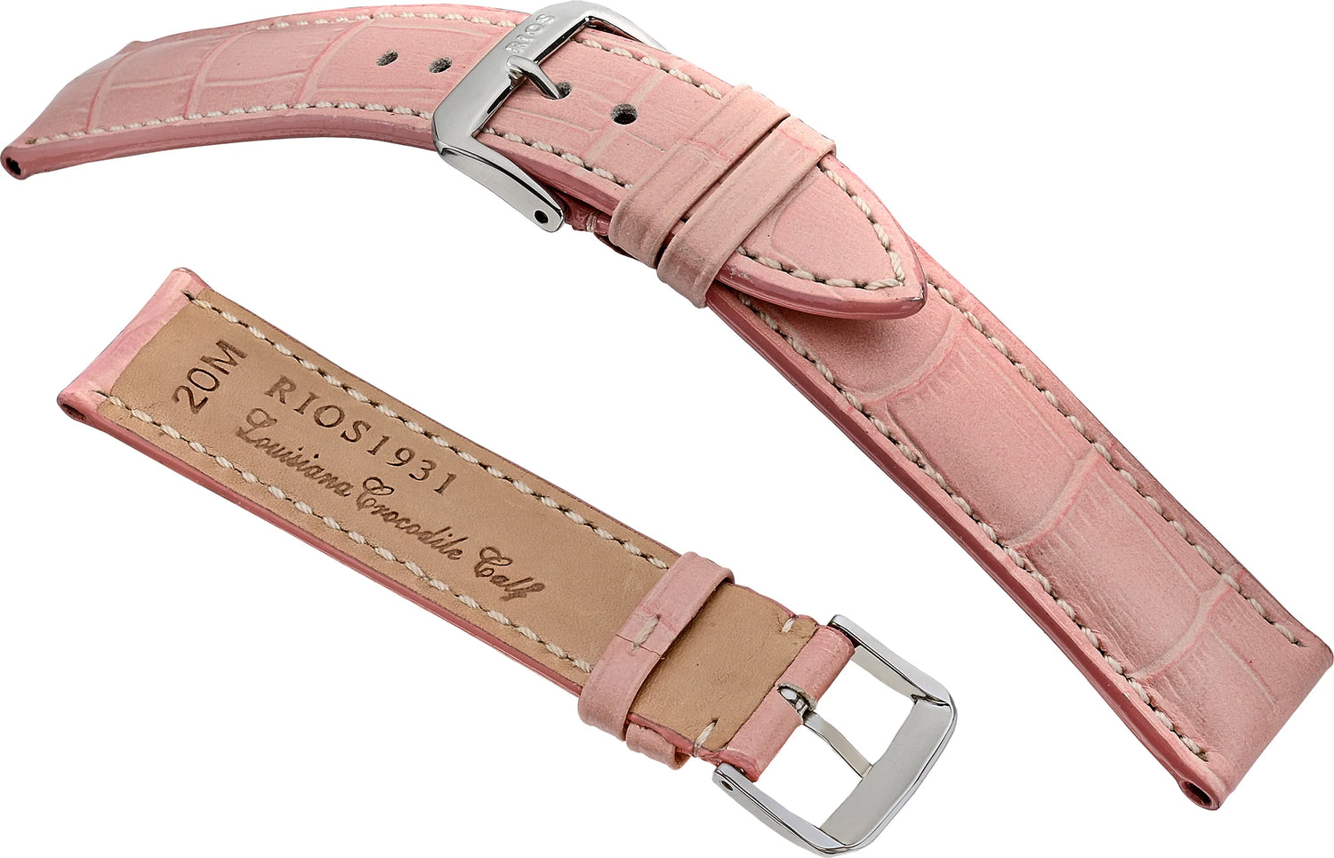 - R51"NEW ORLEANS"- Embossed Alligator grain on Genuine Leather strap, matt finish, with stitching that is cream white. When you purchase a RIOS1931 watch strap you are acquiring a high quality craft product. The combination of traditional, handcrafted perfection while constantly evolving has made the watch straps of RIOS1931 a unique, top quality product. R51 "NEW ORLEANS" watch straps are available from 16 to 22mm, in black, brown, dark brown, tan, burgundy, pink, dark blue, grey, orange. Thickness of strap: (approx.) 6.0 mm to 3.0 mm. Cross Section: round. Select the size and colour that best suits your needs. Lug/Buckle Measurements: 16/14 mm, 18/16 mm, 19/16mm, 20/18mm, 22/18mm.
