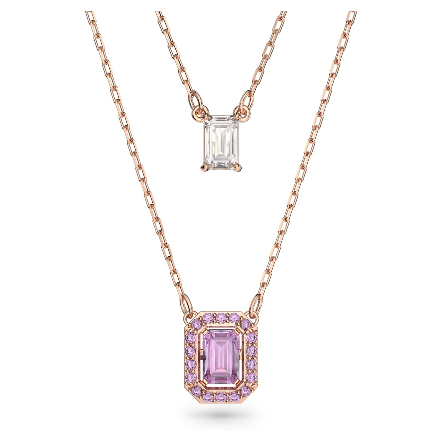 Una layered necklace Octagon cut, Purple, Rose gold-tone plated 5640558